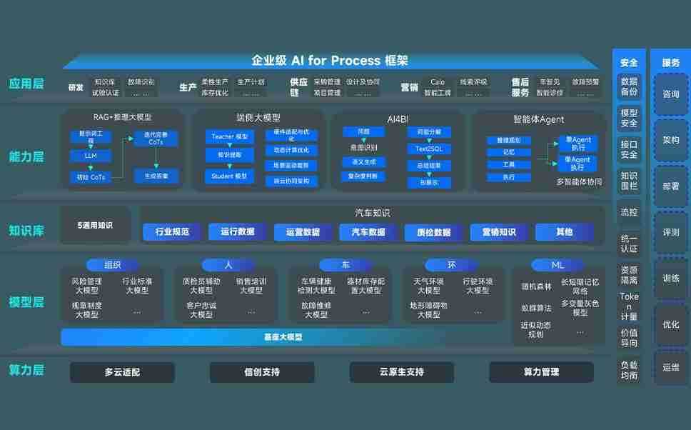 端到端的一站式AI工作空间深度融合了从企业战略规划到日常经营的全流程业务板块,,,,定向解决车企内部领域多、、、、部门多、、、、链条长、、场景碎片化等难题,,支持车企快速构建以AI为核心的生产力写作体系,,,实现任务执行与AI能力的无缝集成与交互