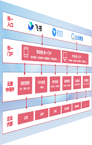 对协作平台提供支持服务,,,支持企业应用与协作平台对接,,,,包含组织同步、、、消息集成、、、、待办集成等。。。支持目前主流的协作平台:钉钉、、、、企微和飞书。。。